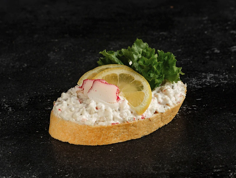 Svěží a lehká lahůdka s jemně nasládlou chutí krabích tyčinek. Na čerstvé vece podáváme náš krabí salát, který pro zvýraznění chuti lehce zakápneme citrónovou šťávou.