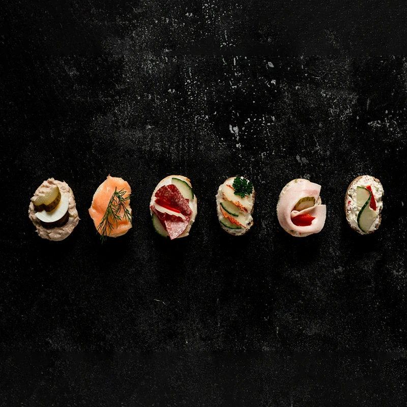 Tuňáková jednohubka je malá, ale chuťově výrazná svačinka, která se skvěle hodí na rodinné oslavy, setkání s přáteli i firemní catering. Na světlé francouzské bagetce podáváme jemnou tuňákovou pomazánku, kterou doplňuje plátek vajíčka a nakládaná okurka pro lehký, svěží kontrast. Ideální volba, když chcete nabídnout hostům něco poctivého, chutného a elegantního.