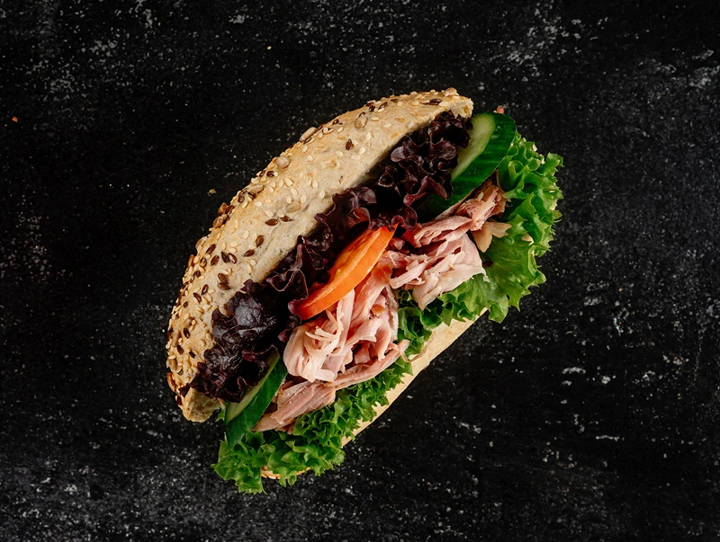Poctivá a šťavnatá svačina, která zasytí a přitom zůstává lehká. Dalamánek s trhaným krůtím masem je ideální volbou pro rychlý oběd, svačinu do práce nebo občerstvení na cestu.