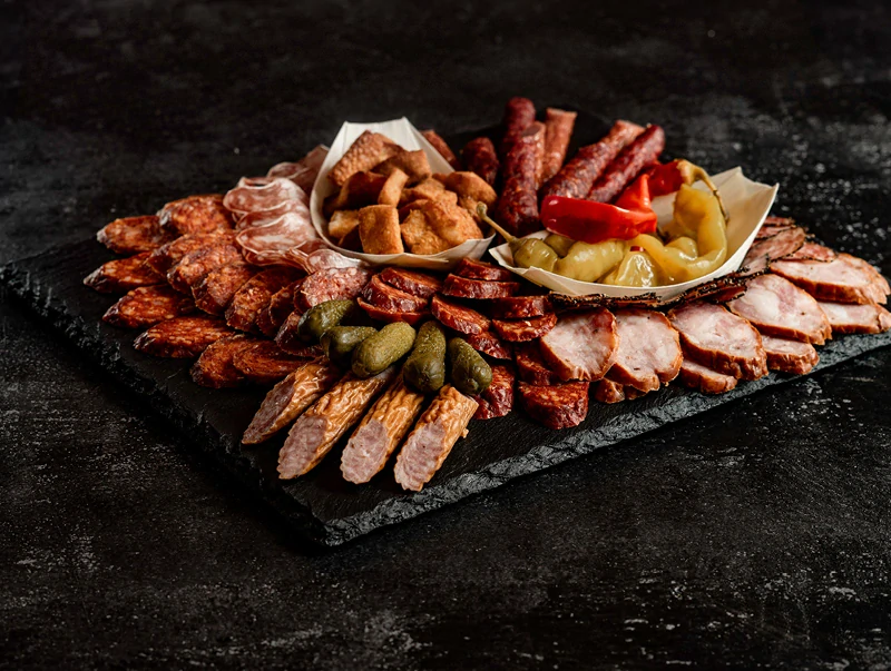 Klobásová mísa je mix pikantních a klasických klobásek, španělského fuetu a výborných, křupavých, vepřových škvarků.