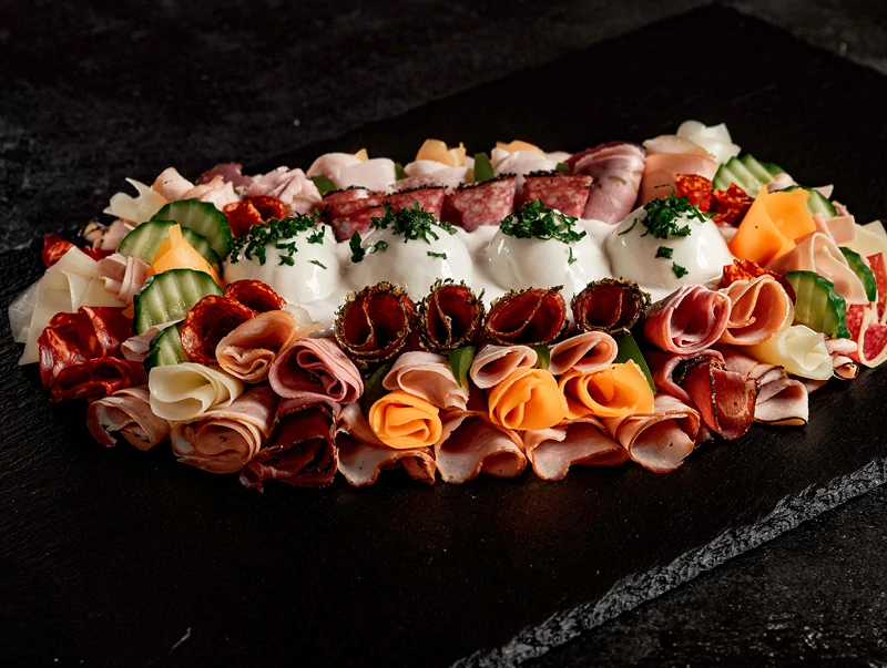 rcová obložená mísa se salátem je vyrobená v kombinaci výborných bezlepkových uzenin firmy Váhala, chlebíčkovým salátem, sýrem a majonézovým přelivem přes vajíčka.